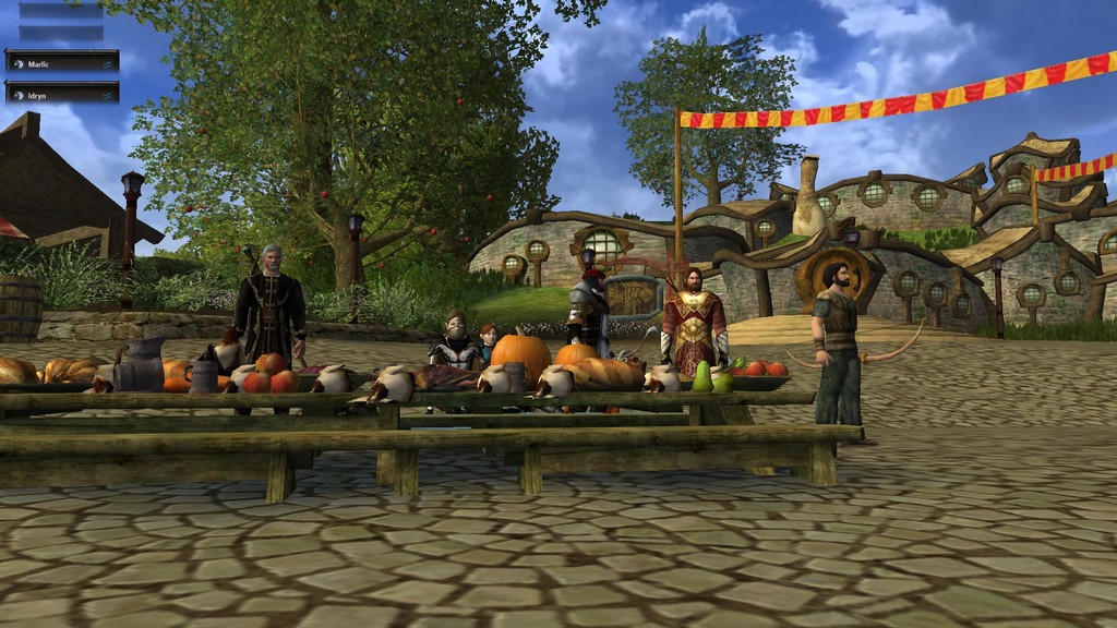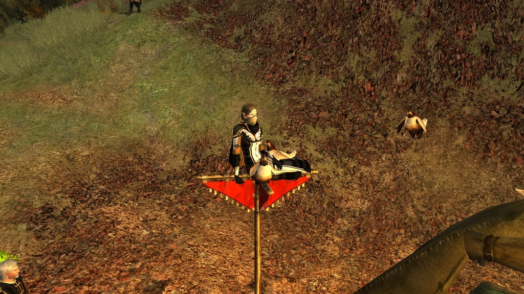 Mit reichlich Hühnern und einem Geleitschutz ging es nach Bruchtal. Natürlich wurde auf dem Weg dorthin mal wieder Bree eingenommen. Die Rollenspieler vor dem Tänzelnden Pony wurden von den gackernden Hühnern überrascht. Zur Feier unseres Sieges ließen wir uns dort sogar füttern. Die Hühner natürlich...^^